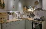 Один из вариантов экономии кухонного пространства — угловое размещение. Предусмотрительно выбирают участок стены подальше от плиты и мойки.