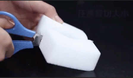 Если очищаемая поверхность сильно загрязнена, то экономичнее использовать не целую губку, а необходимый кусок. Его легко отрезать ножницами или ножом.
