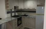 Светлый кухонный гарнитур в серых оттенках, дополненный золотыми акцентами, станет отличным выбором для компактного пространства. Он придаст помещению элегантный и респектабельный вид.