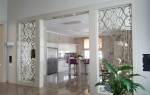 Обратим внимание на расположение мебели в пространстве. Вход из гостиной осуществляется через раздвижную стеклянную дверь с матовым стеклом, которая обычно широко открыта.