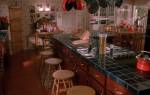 Помещение светлое и просторное, с двумя окнами. Белый гарнитур, интерьер в светлых тонах — кухня героев фильма привлекательна своим дизайном.